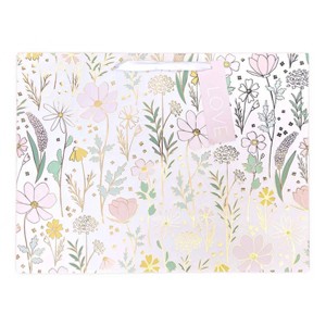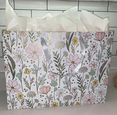 XLarge Floral w/ Gold Foil Accents Wedding Gift Bag with Tag White - Spritz™