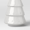 Bring pristine, festive elegance to your holiday decor with this Ceramic Tree from Threshold™. This Christmas tree is designed in a 7.87-inch, three-tiered cone silhouette in crisp white, adorned with an etched floral pattern on the edges for an artisanal look. Display it on the mantel, console table, or as a centerpiece on your dining table to instantly spruce up your space with wintry charm.