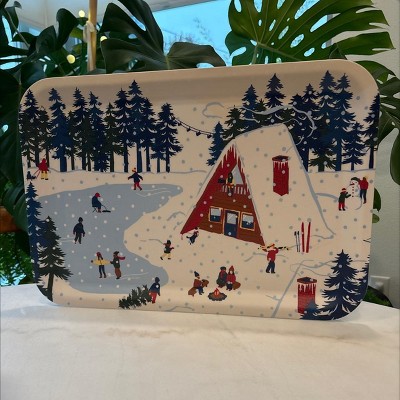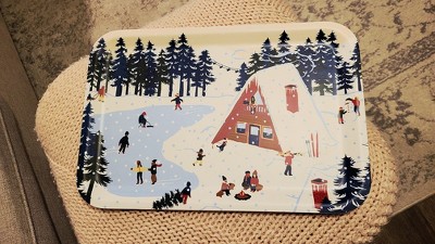 Add a touch of wintry charm to your decor with this Large Winter Scene Tray from Room Essentials™. Made of melamine, this tray features a jolly winter scene with snow falling, people skiing and more to bring seasonal warmth to your space. Designed in a rectangular shape, this tray is ideal for placing on a tabletop, mantel or entryway table to display a variety of decor pieces.
