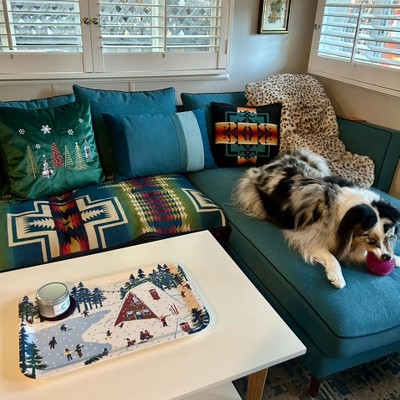 I’m not sure how I didn’t realize the size of this but I love the large size for our cabin coffee table. It has a soft matte finish and a compelling design I admire many times a day. Becuase it’s a winter scene and not specifically Christmas, I will leave this out much longer as well. I was sure this would sell out, so I think I ordered quickly and never looked at the measurements. I pictured it was like a jewelry tray, what a pleasant surprise!