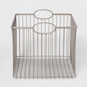 Add this Wire Storage Basket from Pillowfort™ to your kid's space to help keep it organized. Made with metal, this storage basket showcases a wired design that helps them easily see the contents. It comes with an open top for easy access to the items, while the built-in oval handles make it easy to move around spaces. Perfect to fit in a shelf or to place on the floor with the flat bottom, this navy storage basket provides ample space for their toys, accessories and other items to help keep their room neat and tidy.