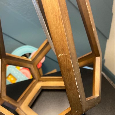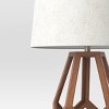 Add a modern spin to your lighting with the Large Wood Geo Assembled Table Lamp from Threshold™. An open geometrical frame accents the brown wooden base of this large freestanding table lamp for eye-catching style, and it's topped with a textured fabric drum shade for evenly distributing the light in your space. Standing at a height of 23.5 inches, this decorative table lamp adds beautiful natural elegance and charm to anywhere in your house, from next to a comfortable sofa or lounge chair in your living room to your reading nook and more.