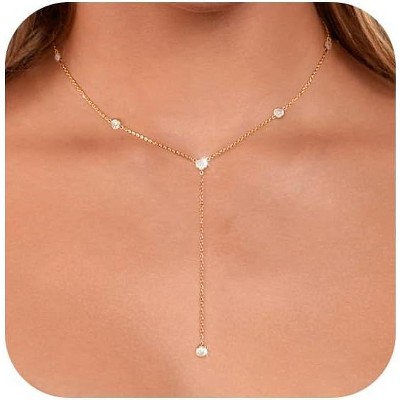 - Size&Package - Dainty lariat necklace chain length is 17.3"+2", the drop chain necklace is: 3.9inch. Upgraded our packaging to a sleek and waterproof plastic box, making it the ideal choice for daily jewelry storage.