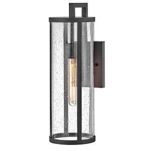 Alfie boosts curb appeal with effortless style. This transitional wall mount lantern features an easy-on-the-eyes cylindrical profile, bold Black metal frame and sizable clear seedy glass finessed to flatter any exterior. Pro tip: we recommend vintage filament bulbs to make Alfie really shine. Material: Aluminum, Finish Color: Black, Width: 6", Height: 18", Length: 8", Depth: 8", Height From Outlet Box: 8", Backplate Width: 5", Backplate Length: 5", Lamping Type: LED, Number Of Bulbs: 1, Wattage: 12 Watts, Dimmable: Yes, Moisture Rating: Wet Rated