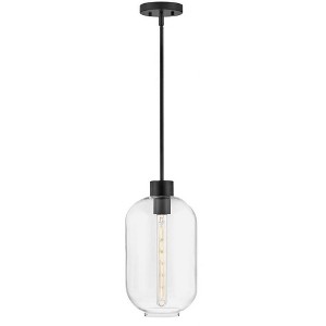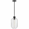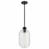 Greer circles around uniquely striking style, gleaming with hints of modern elegance. Featuring an elongated clear glass shade, this stem hung pendant has a trendy, oversized profile. Whether you choose a Black or Lacquered Brass finish, Greer brings sophisticated style to kitchens, foyers, living areas, and beyond. Material: Steel, Finish Color: Black, Width: 8.5", Height: 16", Length: 8.5", Lamping Type: LED, Number Of Bulbs: 1, Wattage: 12 Watts, Dimmable: Yes, Moisture Rating: Dry Rated
