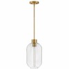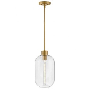 Greer circles around uniquely striking style, gleaming with hints of modern elegance. Featuring an elongated clear glass shade, this stem hung pendant has a trendy, oversized profile. Whether you choose a Black or Lacquered Brass finish, Greer brings sophisticated style to kitchens, foyers, living areas, and beyond. Material: Steel, Finish Color: Lacquered Brass, Width: 8.5", Height: 16", Length: 8.5", Lamping Type: LED, Number Of Bulbs: 1, Wattage: 12 Watts, Dimmable: Yes, Moisture Rating: Dry Rated
