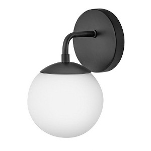 Round out your space with Juniper’s modern simplicity. Selfie-approved, the smooth curves of Juniper’s etched opal glass globes deliver the perfect amount of diffused light. Choose from two chic finishes, matte Black or luxe Lacquered Brass. Material: Steel, Finish Color: Black, Width: 6", Height: 10", Length: 7.25", Depth: 7.25", Height From Outlet Box: 2.5", Backplate Width: 5", Backplate Length: 5", Lamping Type: Incandescent, Number Of Bulbs: 1, Wattage: 60 Watts, Dimmable: Yes, Moisture Rating: Damp Rated