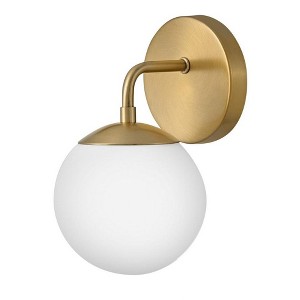 Round out your space with Juniper’s modern simplicity. Selfie-approved, the smooth curves of Juniper’s etched opal glass globes deliver the perfect amount of diffused light. Choose from two chic finishes, matte Black or luxe Lacquered Brass. Material: Steel, Finish Color: Lacquered Brass, Width: 6", Height: 10", Length: 7.25", Depth: 7.25", Height From Outlet Box: 2.5", Backplate Width: 5", Backplate Length: 5", Lamping Type: Incandescent, Number Of Bulbs: 1, Wattage: 60 Watts, Dimmable: Yes, Moisture Rating: Damp Rated