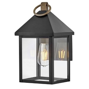 Cool, calm, and collected, Rhett’s features exude quiet satisfaction. The tall panes of glass find ample stability under the oversized pyramid roof, with a top loop finishing off the transitional lantern design. The combination of Black and Burnished Bronze elements brings charming, trend-setting vibes to any neighborhood. Material: Aluminum, Finish Color: Black, Width: 7", Height: 13", Length: 8.5", Depth: 8.5", Height From Outlet Box: 6.75", Backplate Width: 4.75", Backplate Length: 6.25", Lamping Type: LED, Number Of Bulbs: 1, Wattage: 12 Watts, Dimmable: Yes, Moisture Rating: Wet Rated