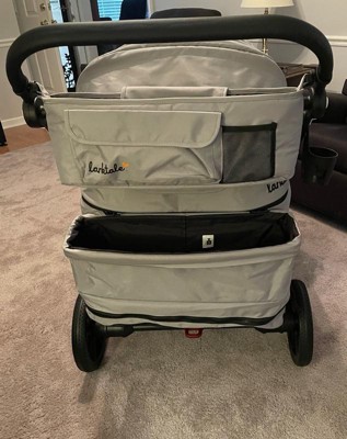 I bought this about a month ago and it is a game changer I have a 6 month old and 4 year old that can get lazy. This is the perfect wagon so spacious and I love all the add ons. The only downfall for me is how heavy it is.