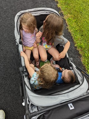 Replaced our two seater wagon when we had our third child, and this was the perfect choice. it’s big enough to fit all three kids plus a friend and still fit through the doorway. I only wish it could accommodate a newborn or that they sold some kind of newborn insert. We did order a grocery cart sling and I think that will do the trick. I provided this honest and true product review in exchange for a rebate on my purchase.