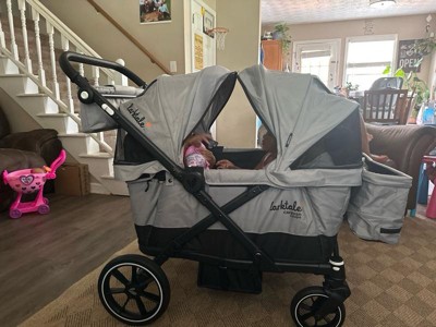 [This review was collected as part of a promotion.] The larktale caravan coupe quad is sturdy without being bulky, it is easy to push and maneuver and is very roomy for our children who are various ages and sizes. They all love going for walks in it and it has been very helpful when we go on outings. Our children are able to sit comfortably together in the wagon with room to spare. They don't feel squished and there is no fighting about who needs more room! The foot well goes past the floor and is quite deep so that their feet can rest comfortably and their knees aren’t high up around them which seems safe as well. Our children love that the seats recline and say that the wagon rides smoothly. They enjoy looking out and resting while we push the wagon and get to enjoy our time together as well. The wagon/stroller also folds up nicely and is compact enough to fit in my trunk. Surprisingly, it does not weigh too much and I can easily lift it in and out of my trunk and get it set up quickly. I also love the five point harness seatbelts for each of the four seats and the fact that there are two large collapsable canopies with mesh to block out the sun. The design is very nice and simple and the additional storage baskets allows for me to take everything we may need and not need to bring an extra bag. The cup holder is always an added benefit for mom and dad and the wagon comes with an extra basket that can be placed in the wagon for the children to have drinks, snacks or bring books or toys. The larktale caravan coupe Quad is a family favorite!