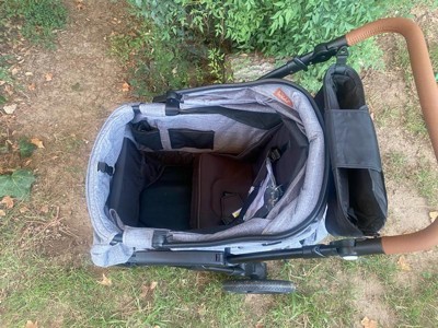 - Large multi-position sun canopy with pop-out visor, zippered canopy extension with airflow panel, and a peek-a-boo window. Comfortably shades both seats when fully expanded in double wagon mode.