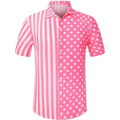 Lars Amadeus Men's Beach Striped Short Sleeve Hawaiian Color Block Button Shirts Pink White XX-Large