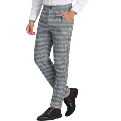 Lars Amadeus Men's Casual Slim Fit Flat Front Skinny Plaid Dress Pants Gray Black 30
