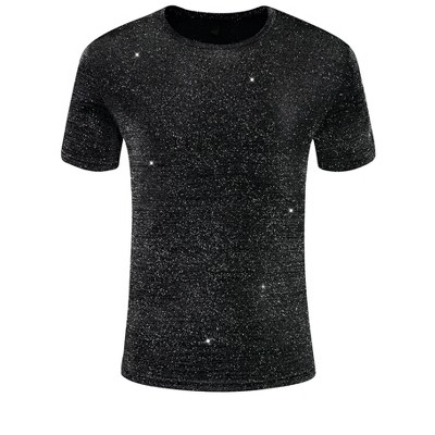 Lars Amadeus Men's Contrasting Color Short Sleeves Disco Party Sparkly Sequins Shirt