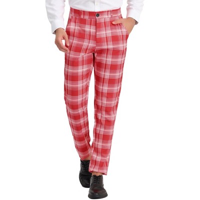 • Slim fit, tapered cut, button front with a zip-fly closure, hand pockets at the sides, classic dress plaid pants