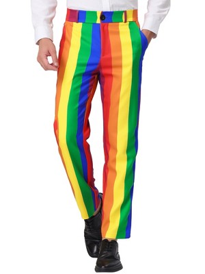 Various colors and patterns, zipper closure, flat front, plaid printed dress pants