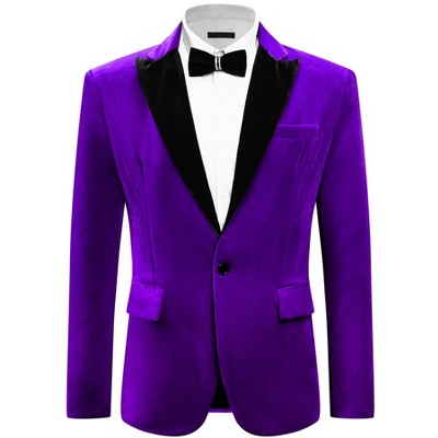 INSPIRE CHIC Men's Slim Fit One Button Shawl Lapel Wedding Tuxedo Velvet Blazer Purple Large