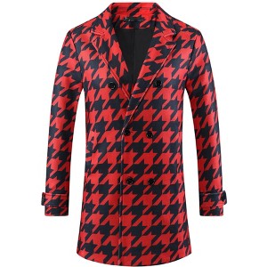 Lars Amadeus Men's Houndstooth Double Breasted Plaid Pattern Winter Long Coat - 1 of 4