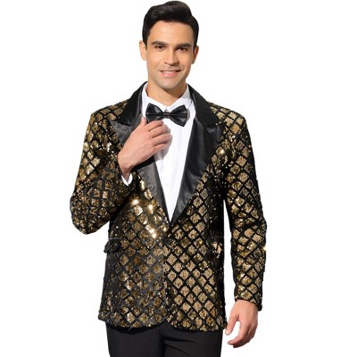 Elevate your style with these men's sequin blazers, featuring a dazzling sequin pattern that catches the light and adds a touch of glamour to any outfit. This sequin blazer is the perfect choice for those looking to impress at a variety of events, from weddings and proms to parties and other formal gatherings. The single-button front closure provides a sleek and modern silhouette, and the sequin finish of this sports coat adds a unique distinction, making it a standout choice for those who want to stand out in a crowd on special occasions.