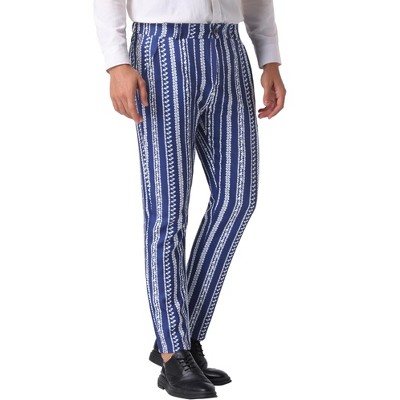 Lars Amadeus Men's Plaid Printed Regular Fit Flat Front Work Prom Dress Pants Navy Blue 30
