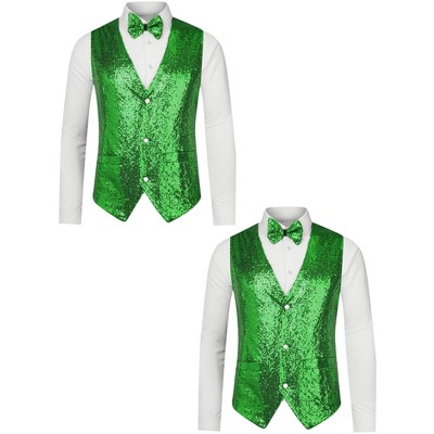 Lars Amadeus Men's Shiny Sequin Sleeveless Suit Vest Set with Bow Tie 2 Packs - 1 of 4