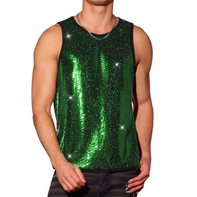 Lars Amadeus Men's Short Sleeves Crew Neck Nightclub Party Sequin T-Shirts Large Green