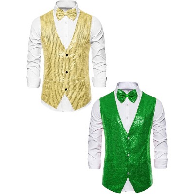 Sleeveless V-neck, and full sequin design, make you eye-catching in the crowd. The classic single-breasted party suit vest and slim tailoring perfectly show your charm. This sequined vest matches a bow tie, trousers, a shirt, and a blazer to create a bright and handsome appearance. Suitable for multiple occasions, nightclubs, performance costumes, birthday parties, hip-hop, music festivals, Christmas, role-playing, etc.