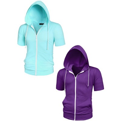 Lars Amadeus Men's Summer Lightweight Zip Up Short Sleeves Hooded Sweatshirt 2 Packs