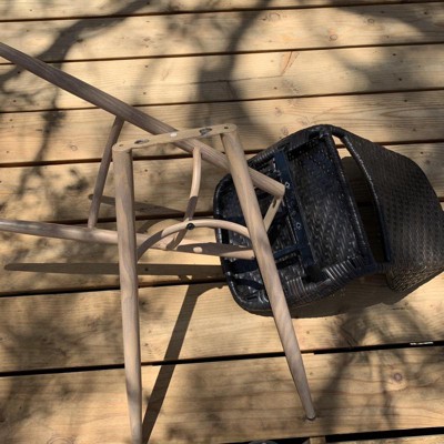These wicker barstools are the perfect addition to any patio or backyard. Featuring wicker wrapped around an iron frame with mid century styled legs, these stools provide both comfort and style all in one tidy package. The legs are made from iron with a wood finish, giving you the aesthetic look of wood with the durability of metal. Enjoy them with any bar set you currently own, or design a new set around these stools. They are perfect for any occasion.