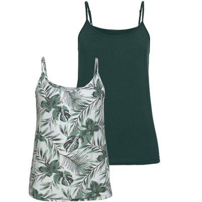 2 pack of tank tops featuring a slight V-neck with cute gathering. * Adjustable spaghetti straps * Elastic hem for a flattering silhouette * Print may vary * Length approx. 18.9 inches * Viscose/elastane. Imported. * Machine wash cold with like colors, inside out * Hang to dry or lay flat