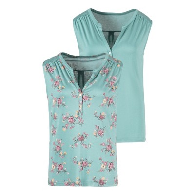 2 pack of tank tops featuring a slight V-neck with cute gathering. * Adjustable spaghetti straps * Elastic hem for a flattering silhouette * Print may vary * Length approx. 18.9 inches * Viscose/elastane. Imported. * Machine wash cold with like colors, inside out * Hang to dry or lay flat