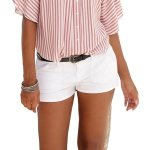 Finish off your next look with these slim-fit shorts. * Two back pockets and two front pockets * Inside leg length approx. 2 inches * Stretch denim fit * Belt not included * Runs small * 98% Cotton, 2% Elastane. Imported. * Machine wash cold with like colors, inside out * Hang to dry or lay flat