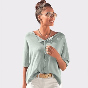 Garment Style: Three Quarter Sleeve, Back Button Down