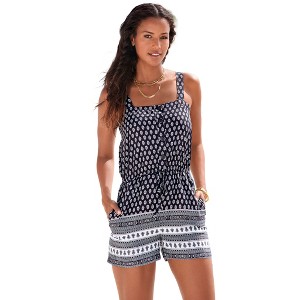 Women's Patterned Button Detail Romper - LASCANA - 1 of 4