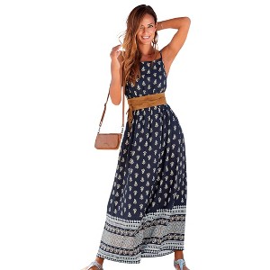 This patterned maxi dress has everything you need for the perfect appearance on warm days. * Adjustable spaghetti straps * Square neckline * Elastic waistband * Skirt part with border print * Belt not included * Print may vary * Skirt length approx. 41 inches * 100% Viscose. Sustainable viscose. Imported. * Machine washable