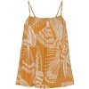Explore the many faces of sunshine with this bright and flowy blouse. * Racerback * Square neckline and spaghetti straps * Shirttail hem * Cool touch woven fabric * Print may vary * 100% Viscose. Sustainable Viscose. Imported. * Machine washable