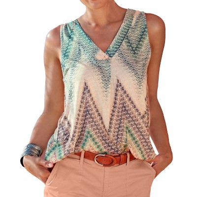 Sleeveless top in a feminine style with a flattering neckline. * With gold-colored decorative clasp * Keyhole neckline * Slightly gathered at the front * Slightly flared fit * Print may vary * Length approx. 25.25 inches * 100% Viscose. Imported. * Machine wash cold with like colors, inside out * Hang to dry or lay flat