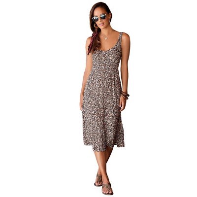 Women's Smocked Convertible Maxi Dress - LASCANA - Brown Multi Paisley 6
