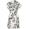 Sophisticated enough for the office, comfortable enough for vacation - this dress does it all. * Lapel collar * Dolman short sleeves * Functional full-length button placket * Self-tie waistbelt * Functional belt loops * A-line silhouette * Print may vary * 58% Rayon, 28% Cotton, 14% Linen. Imported. * Machine washable