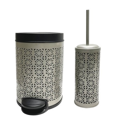 Laser Cut Toilet Brush Holder with Lid Ivory - Nu Steel: Metal Bathroom Set, Spot Clean, Off-White Accessory