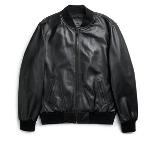 Heavy weight ribbed neck, waist, and cuffs with leather cuff protector providing a classy and vintage look on the bomber jacket.