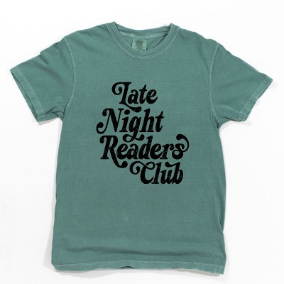 Product Name: Late Night Readers Club Distressed - Women's Garment Dyed Graphic T-Shirt