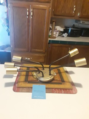 [This review was collected as part of a promotion.] Great fixture if you are looking for a lot of light in a given space. The 5 bulbs cast an even glow and the look is very contemporary which is what we were looking for. The brass and black color matched the other hardware in this location perfectly.