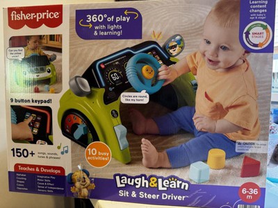 Baby can shift learning fun into high gear behind the wheel of the Laugh & Learn Sit & Steer Driver activity center from Fisher-Price. This electric car-themed play center is packed with activities all around, plus exciting lights, music and sounds, to encourage babies to crawl and explore. The realistic design includes a light-up dashboard, 9-button keypad and moveable “steering” wheel with horn that encourages toddler pretend play and activates 150+ songs, sounds and phrases. And with 3 Smart Stages levels, the learning fun grows along with your baby! Colors and decorations may vary.