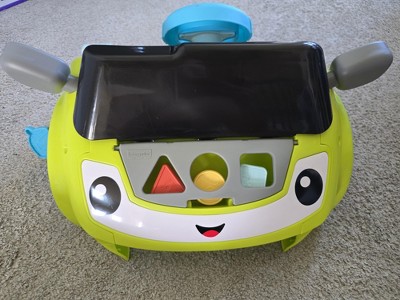- Hands-on activities all around: Keypad, “gear shifter” clicker, lock toggle, wheel flipper, “battery gauge” clicker, and shape-sorter trunk with 3 blocks