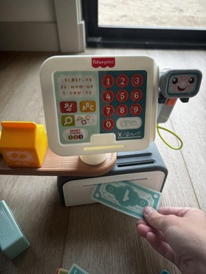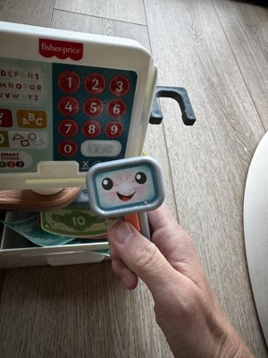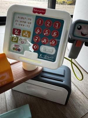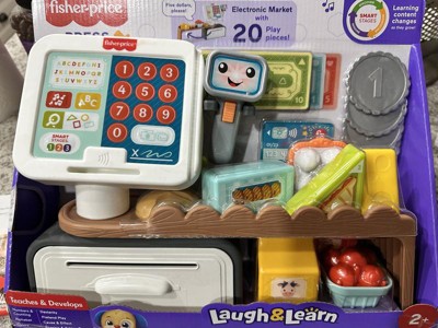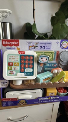 The Laugh & Learn Count & Shop Cash Register from Fisher-Price is an electronic learning toy that introduces toddlers and preschoolers to numbers, counting, the alphabet, colors, shapes and more! Kiddos can press the 15 buttons on the register or use the scanner to hear 150+ songs, sounds and phrases. This interactive play store includes 20 play pieces and 3 Smart Stages learning levels to enhance storytelling and pretend play as kids shop, checkout and pay. Requires 3 AA batteries, included. Colors and decorations may vary.