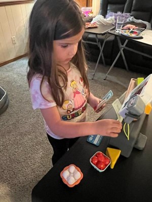 [This review was collected as part of a promotion.] The packaging was super cute and colorful, which immediately caught my child's attention! She was so excited to open it up and dive right in. Once we took it out of the box, she could start playing right away, and she was engaged for a really long time. It’s also great that we can easily take it with us when we're on the go. I loved that everything needed to play was included, keeping her entertained for ages! One little suggestion for improvement: it would be even more fun if the scanner cord were a bit longer or maybe even cordless, making it easier to scan the groceries. And the coin slot could use a little more distance from the keypad and the cash drawer slot. All in all, this toy is a fantastic choice that I know will last for years, and it will be a perfect addition to our other shopping and store toys!