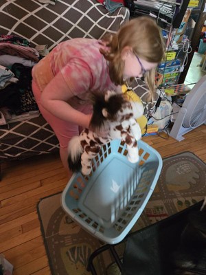 Great basket! Simple, well made plastic basket. Perfect for use with clothes or play! My 9 year old claimed it immediately and used it for her stuffed animals, even before I could start using it for anything else. Would also be great for a car catch-all kind of bin!